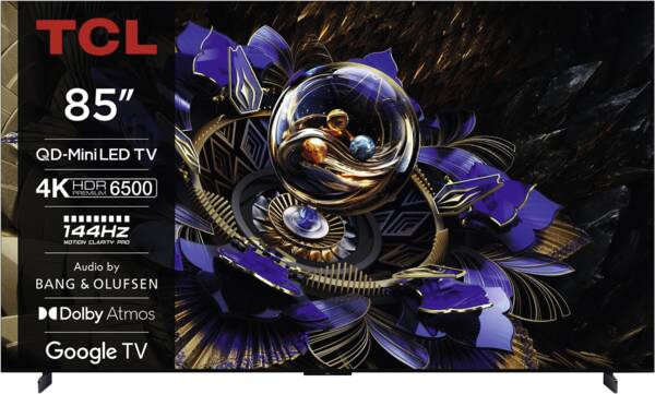 216 cm LED-Fernseher, 85 Zoll, Auflösung: 3.840×2.160 Pixel, 4K Ultra HD, 4K AI Upscaling, H.265 HEVC, HVA-Panel, Quad Core Prozessor, QD Mini LED, High Dynamic Range (HDR 10), High Dynamic Range (HDR 10+), Hybrid Log Gamma (HLG), Dolby Vision IQ, 144 Hz Bildwiederholungsrate, Motion Clarity Pro, DVB-T2, DVB-S2, DVB-C, 2.1 Soundsystem, 120 Watt maximale Gesamtleistung, Remote App kompatibel für iPhone, Android, integrierte Sprachsteuerung, kompatibel mit Amazon Alexa, Apple HomeKit, Google Assistant, Internet-Zugriff auf Online-Dienste, SmartTV, Google TV-Betriebssystem, Hands-free Voice Search, Google Cast (Übertragung von Inhalten vom Smartphone oder Tablet auf den Fernseher), Miracast (Drahtlose Bildübertragung vom Smartphone oder Tablet auf den Fernseher), WLAN, Energieeffizienzklasse G