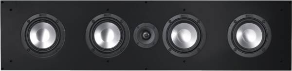Center-Lautsprecher, Einbau-Lautsprecher, 3-Wege System, Bassreflex, 140 Watt Nennbelastbarkeit, 200 Watt maximale Musikbelastbarkeit, zwei 180 mm Tieftöner, zwei 180 mm Passivmembrane, 25 mm Hochtöner, abnehmbare Front, Wandhalterung