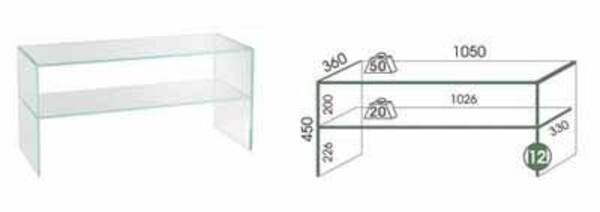 Audio-/Video-Unterschrank, Glas, Belastbarkeit bis 50 Kg, Glaseinlegeboden
