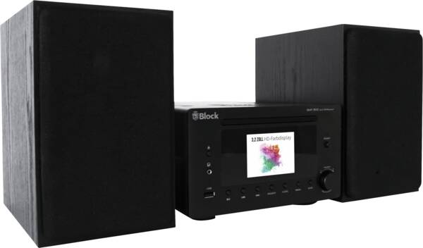 Micro-Stereo-System, 2×40 Watt Nennleistung, Multiroom-Unterstützung, CD-Player, Radioteil, UKW, DAB-Empfang, DAB+, Internet-Radiowiedergabe, Internet-Zugriff auf Online-Dienste, Spotify, 8,13 cm Bildschirm, 3,2 Zoll, Breitband-Lautsprecherboxen, AUX-Eingang, Bluetooth-Schnittstelle, USB-Anschluss, Wireless LAN, DLNA