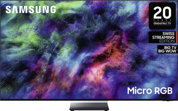 214 cm LED-Fernseher, 85 Zoll, Auflösung: 3.840×2.160 Pixel, 4K Ultra HD, 4K AI Upscaling Pro, Antireflexbeschichtung, H.265 HEVC, Micro RGB AI Pro, Micro RGB Technologie, High Dynamic Range (Micro RGB HDR Pro), Hybrid Log Gamma (HLG), 165 Hz Bildwiederholungsrate, DVB-T2, DVB-S2, DVB-C, Twin-Tuner für Aufnahme, 4.2.2 Soundsystem, Dolby Atmos, 70 Watt maximale Gesamtleistung, Remote App kompatibel für iPhone, Android, per App steuerbar, integrierte Sprachsteuerung, kompatibel mit Samsung Bixby, Smart Things, Internet-Zugriff auf Online-Dienste, SmartTV, Tizen-Betriebssystem, AMD FreeSync Premium Pro Technologie, Hands-free Voice Search, USB-TimeShift, Bluetooth Audio-Unterstützung, WLAN, Energieeffizienzklasse E