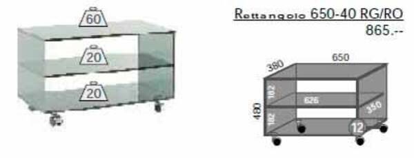 TV-Konsole für Flachbildschirme, Glas, Belastbarkeit bis 50 Kg, auf Rollen fahrbar, Glaseinlegeböden: 1, Glasoberplatte