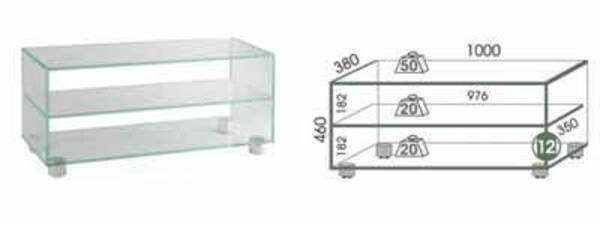 TV-Konsole für Flachbildschirme, Glas, Belastbarkeit bis 50 Kg