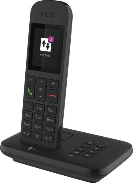 Festnetz-Telefon (für analogen Anschluß), strahlungsarm, schnurlos, integrierter Anrufbeantworter, CAT-iq, DECT, Display alphanumerisch, farbig, 5 cm Diagonale, Telefonbuchfunktion, bis 200 Nummernspeicher, Freisprecheinrichtung, Raumüberwachung (Babyfon-Funktion ), ca. 200 Stunden Standby-Zeit, ausgezeichnet mit dem Blauer Engel Umweltzeichen, Blauer Engel Klasse: uz131