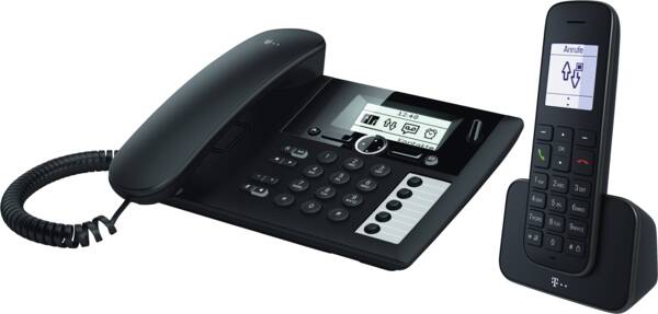 Festnetz-Telefon (für analogen Anschluß), schnurgebunden, integrierter Anrufbeantworter, Display 3-zeilig, alphanumerisch, graphisch, Anruferliste, Freisprecheinrichtung, Hörgeräte kompatibel, zusätzliche Mobilteile: 1, ausgezeichnet mit dem Blauer Engel Umweltzeichen, Blauer Engel Klasse: uz131
