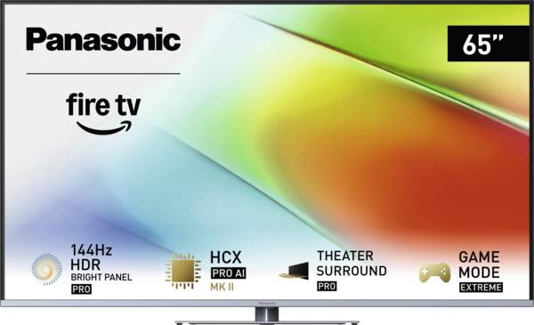 164 cm LED-Fernseher, 65 Zoll, Auflösung: 3.840×2.160 Pixel, 4K Ultra HD, 4K AI Upscaling, H.265 HEVC, HDR Bright Panel Pro, Local Dimming: Direct Full Array Elite, High Dynamic Range (HDR 10), High Dynamic Range (HDR 10+ Adaptive), Hybrid Log Gamma (HLG), Dolby Vision IQ, 144 Hz Bildwiederholungsrate, HCX Pro AI MK II Prozessor, DVB-T, DVB-T2, DVB-S2, DVB-C, TV>IP Client, Theater Surround Pro, Dolby Atmos, 20 Watt maximale Gesamtleistung, integrierte Sprachsteuerung, kompatibel mit Amazon Alexa, Apple HomeKit, Internet-Zugriff auf Online-Dienste, SmartTV, Fire OS-Betriebsystem, AMD FreeSync Premium Technologie, Tastatur/Maus über Bluetooth, USB-Recording, AirPlay, Bluetooth Audio-Unterstützung, WLAN, Energieeffizienzklasse G